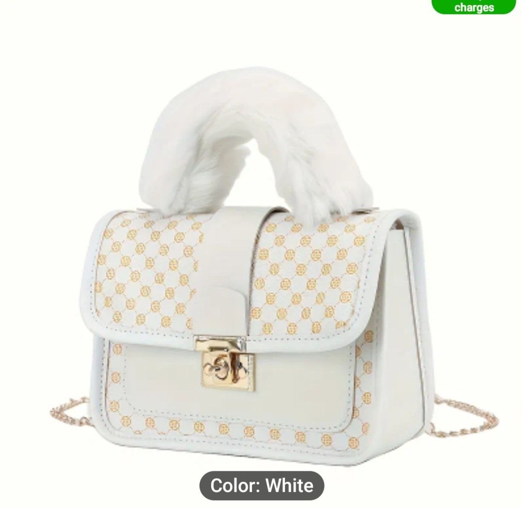 / Bolso mediano con asa de peluche.