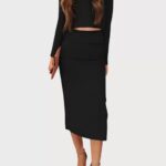 / Conjunto de dos piezas de saya larga y mangas largas