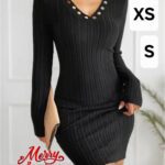 Vestido ajustado con mangas largas, corto y con cuello en V