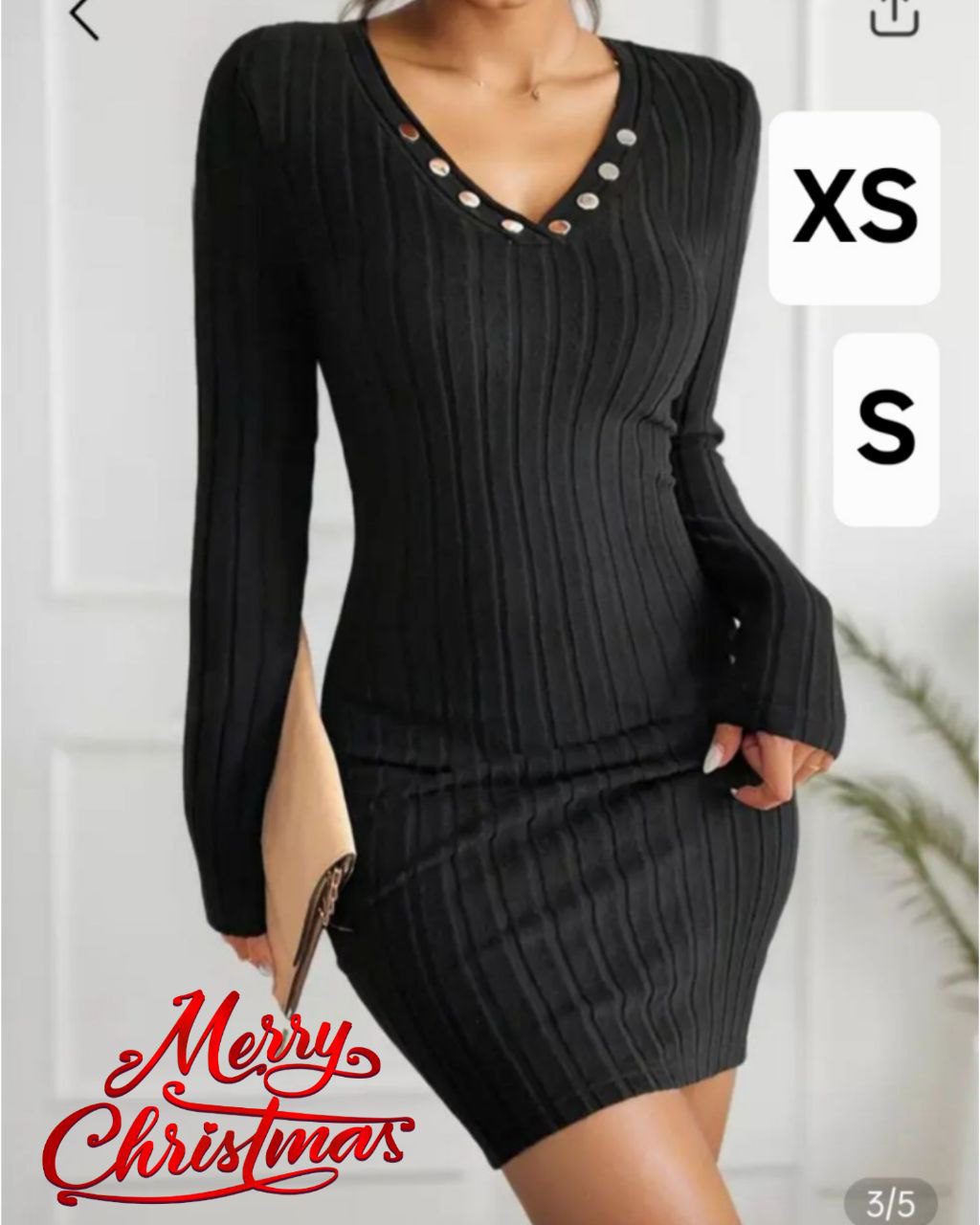 / Vestido ajustado con mangas largas, corto y con cuello en V