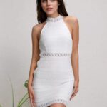 Vestido blanco con cuello alto y sin mangas