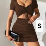 Vestido ceñido, corto de mangas cortas con abertura en el abdomen