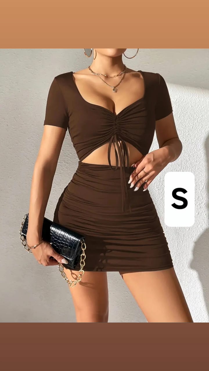 Vestido ceñido, corto de mangas cortas con abertura en el abdomen