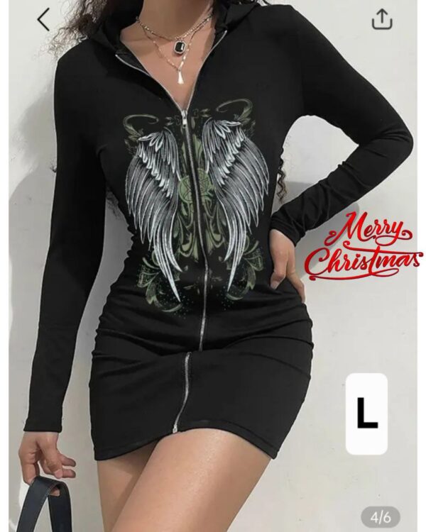 Vestido de mangas largas con zipper al frente y diseño de alas