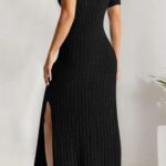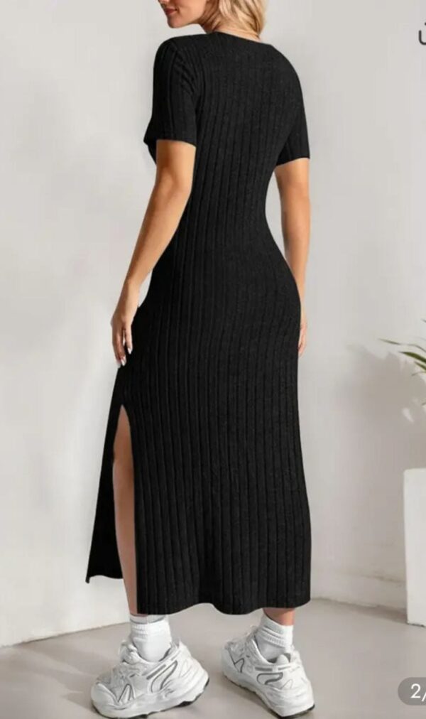 / Vestido largo de mangas cortas y abertura en la pierna