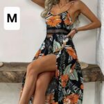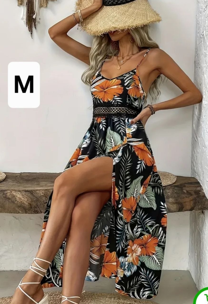 / Vestido largo y holgado con abertura en la pierna.