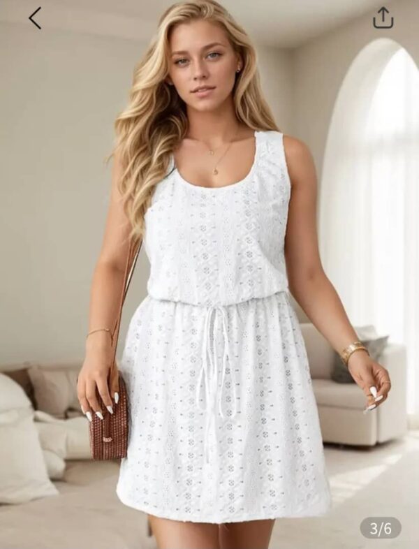 Vestido con tirantes atados y con falda acampanada, diseño de cuadros